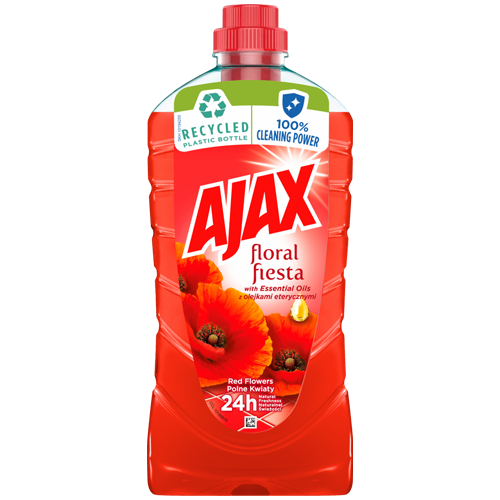 Płyn uniwersalny Ajax z linii Floral Fiesta to połączenie skuteczności ze świeżością. Zawiera kompozycję zapachową wzbogaconą o naturalne ekstrakty z kwiatów i olejki eteryczne. Uwalnia aromat wiosennych kwiatów, który wypełnia Twój dom naturalną świeżością do 24 h.