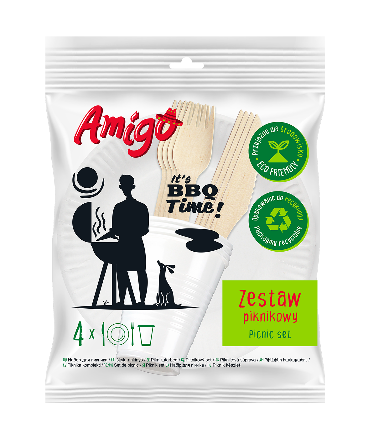 Amigo — 1 szt. — ekologiczny zestaw piknikowy dla czterech osób (drewniany)