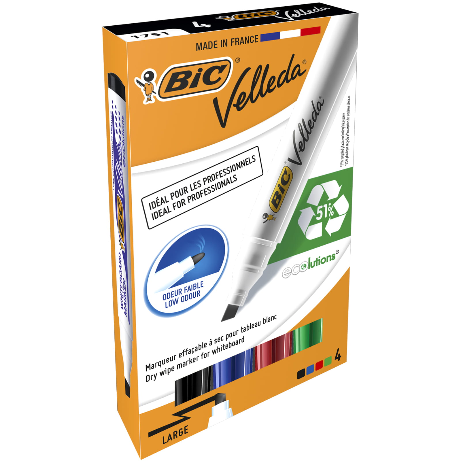 BIC — 4 szt. — Suchościeralne markery 1751 (Miks)