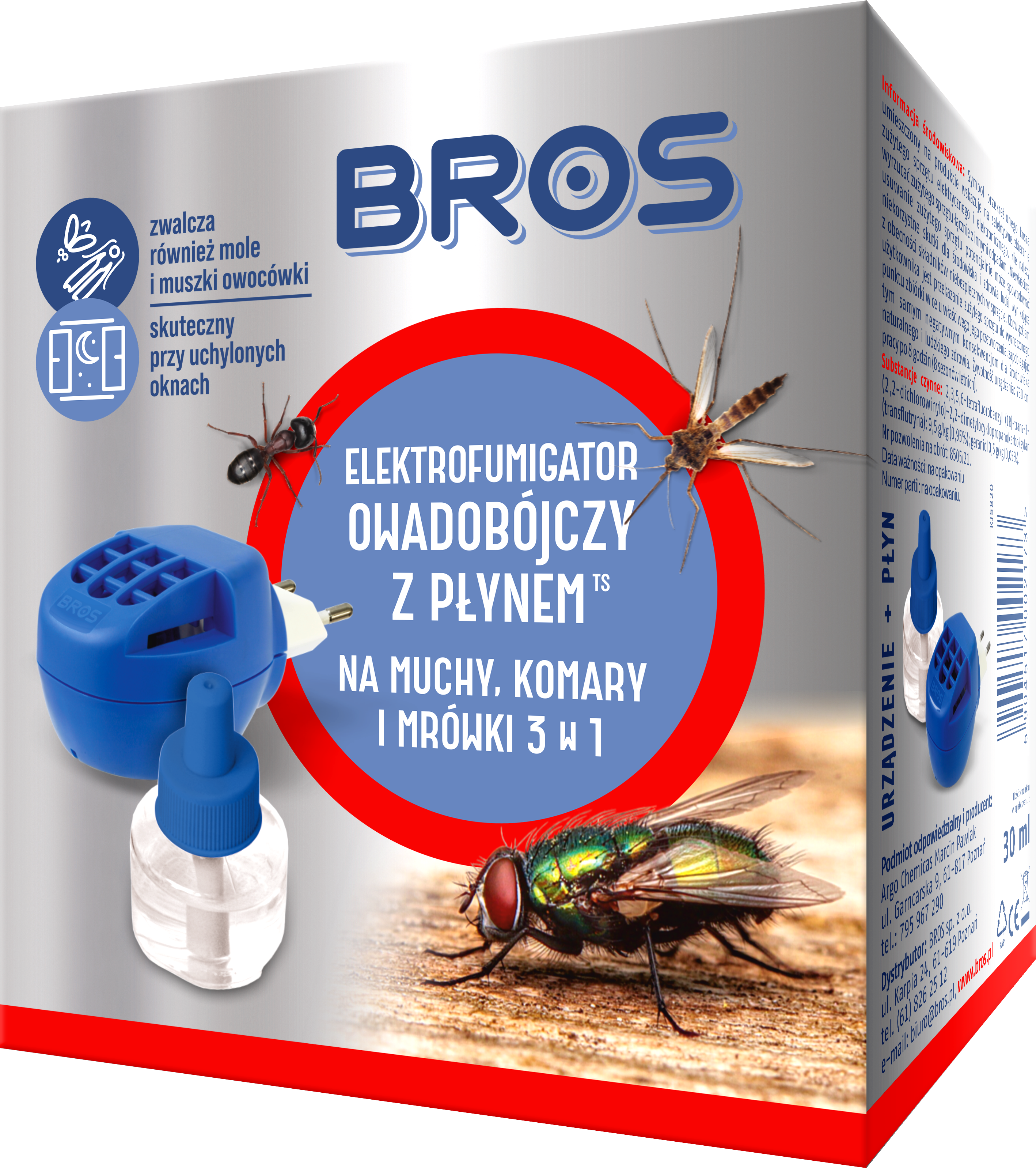 Bros — elektro + płyn na mrówki/komary/muchy.