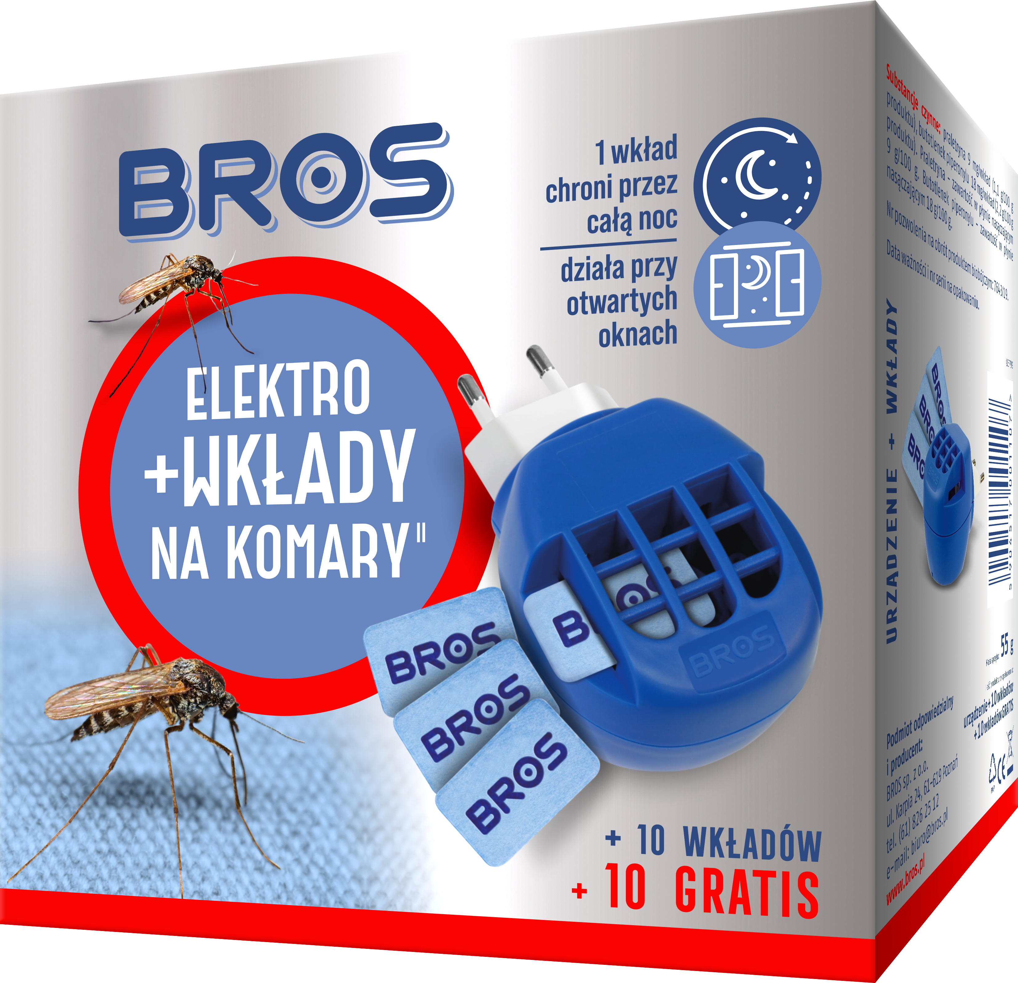 Urządzenie z wkładami w formie płytki zapewnia skuteczną ochronę pomieszczeń przed insektami, zwłaszcza komarami. Wielogodzinne działanie parującej substancji zapewnia ochronę pomieszczenia przez całą noc. Dostępne są opakowania uzupełniające z wkładami.