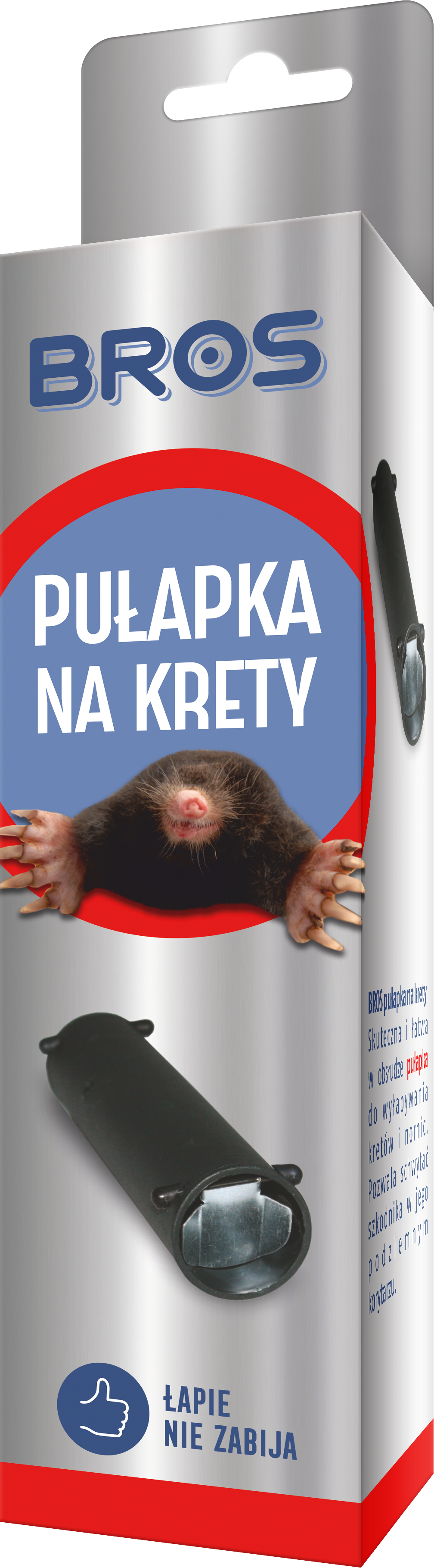 Urządzenie do wyłapywania kretów i nornic. Plastikową rurkę należy umieścić w tunelu między dwoma kopcami. Po wejściu kreta do wnętrza umieszczona w rurce zapadka uniemożliwia mu opuszczenie pułapki.