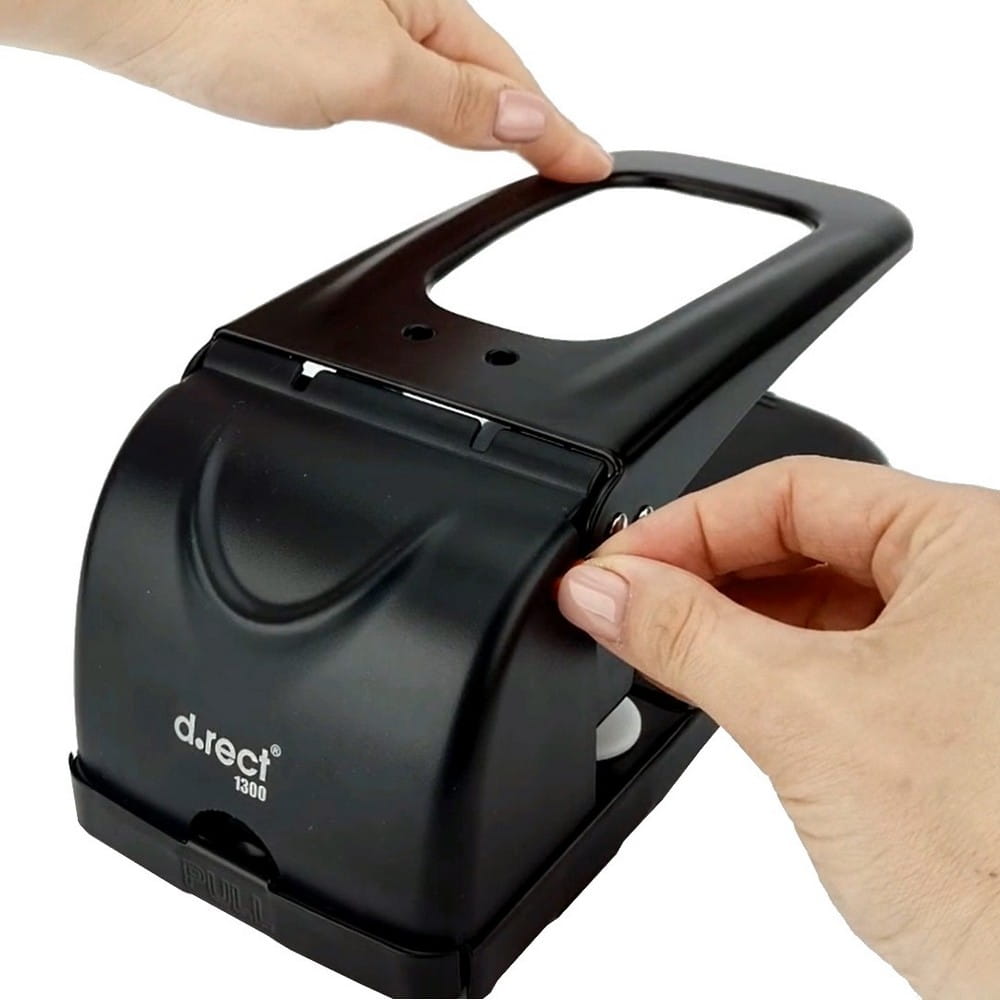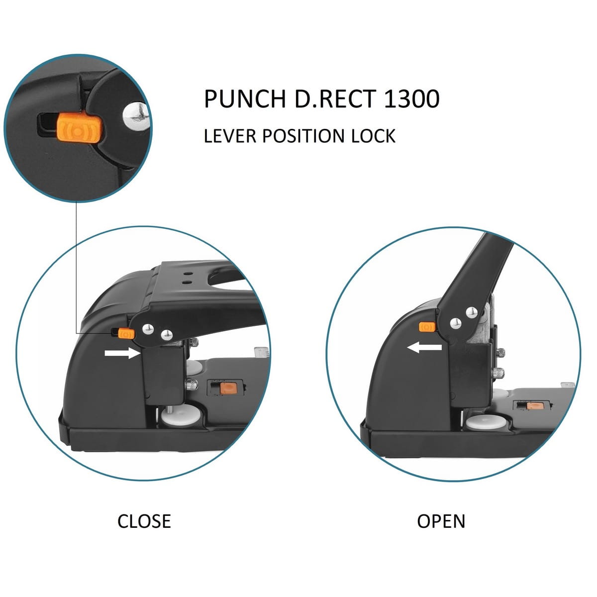 Solidny dziurkacz z metalowym mechanizmem i dźwignią. Znajdzie zastosowanie przy archiwizacji dokumentów, gdyż przeznaczony jest do dużych plików. Posiada stabilną podstawę oraz metalowy ogranicznik formatu. Posiada blokadę położenia dźwigni.