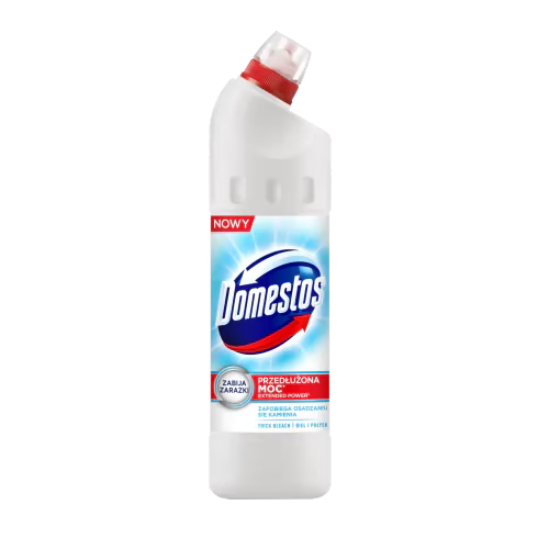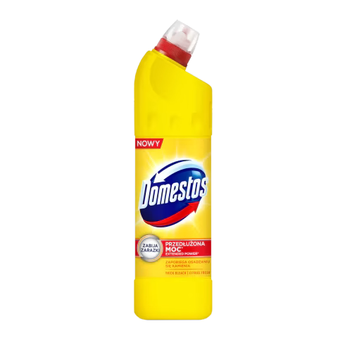 Skoncentrowany płyn-żel Domestos Przedłużona Moc to środek codziennego użytku, który na stałe zaprowadzi porządek i świeżość w Twojej toalecie. Zabija 99,9% zarazków, zapobiega osadzaniu kamienia i wybiela toaletę. A to wszystko w jednej, wygodnej butelce, która ułatwi sprzątanie i skróci jego czas do minimum.