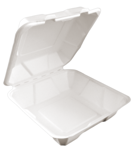 EKO LUNCH BOX (menu box) z trzciny cukrowej, jednokomorowy. Duży, popularny w gastronomii i cateringu. Dobrze izoluje, wodo i tłuszczoodporny, na dowolne potrawy. Sprawdzony w transporcie, estetetyczny, naturalny i trwały.