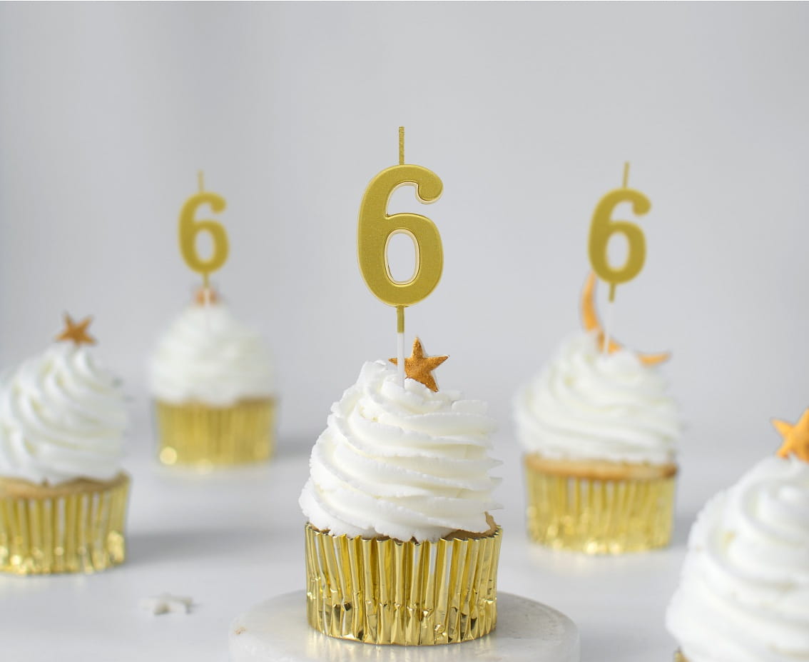 Świeczka Urodzinowa, piker CYFRA 6, METALICZNA ZŁOTA, 1 SZT.