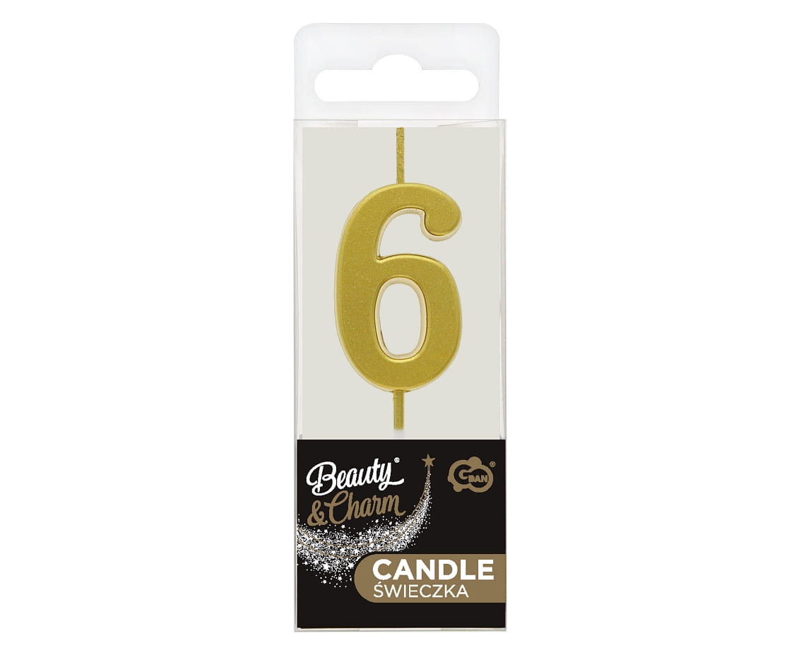 GODAN — 1 szt. — świeczka urodzinowa Beauty & Charm, złota (cyferka 6)