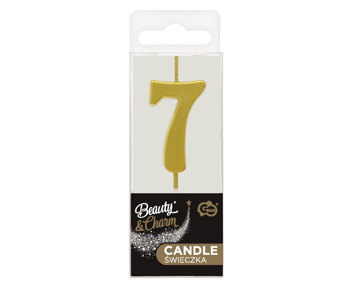 GODAN — 1 szt. — świeczka urodzinowa Beauty & Charm, złota (cyferka 7)