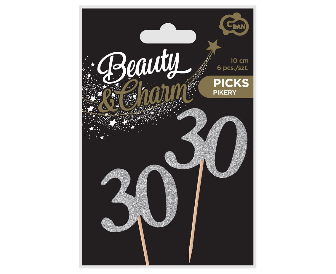 GODAN — 6 szt. — topper Beauty & Charm z cyfrą 30 (wybór)