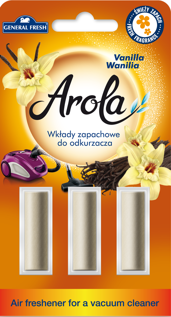 Wkłady zapachowe do odkurzacza Arola marki General Fresh to prosty sposób, aby każdemu sprzątaniu towarzyszył wspaniały aromat. Wystarczy, że przy wymianie worka w odkurzaczu włożą Państwo do niego zapachowy wkład. Specjalnie dla Państwa, wkłady przygotowaliśmy w dziesięciu wariantach zapachowych. Dzięki temu podczas odkurzania powietrze wydostające się z Państwa urządzenia będzie pachnieć świeżością w ulubionym wydaniu. Wkłady zapachowe do odkurzacza Arola od General Fresh sprawią, że nawet wynoszone podczas porządków worki na śmieci nie zniszczą powiewu świeżości, który jest najlepszą nagrodą za wysiłek podczas odkurzania.