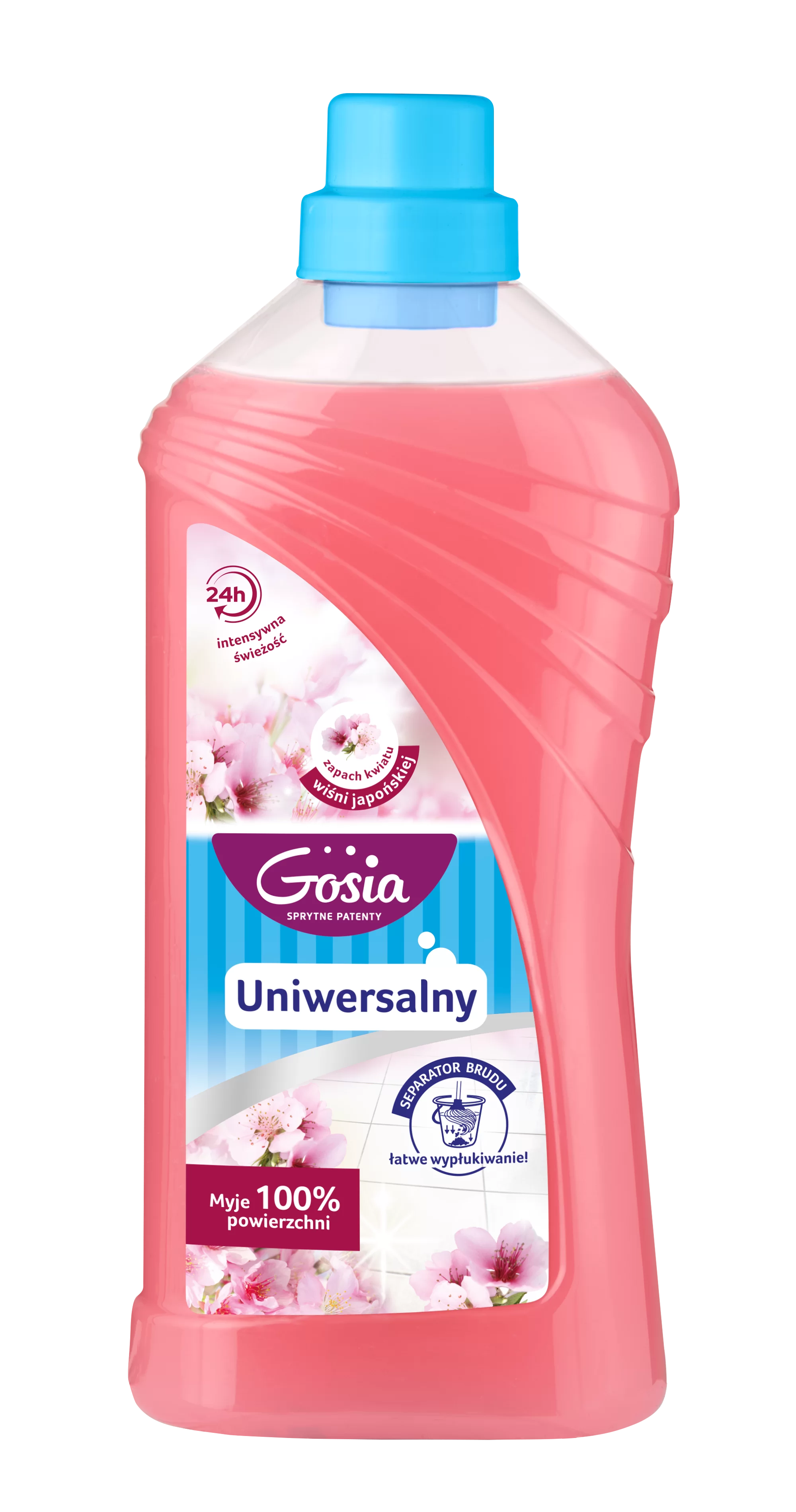 Delikatny i skuteczny płyn uniwersalny marki Gosia sprawdzi się w każdym domu. Idealny do podłóg, blatów, mebli i kafelków, pozostawia powierzchnie czyste, lśniące i pachnące kwiatem japońskiej wiśnii. Dzięki innowacyjnej formule brud osadza się na dnie, co ułatwia sprzątanie i zwiększa efektywność mycia.