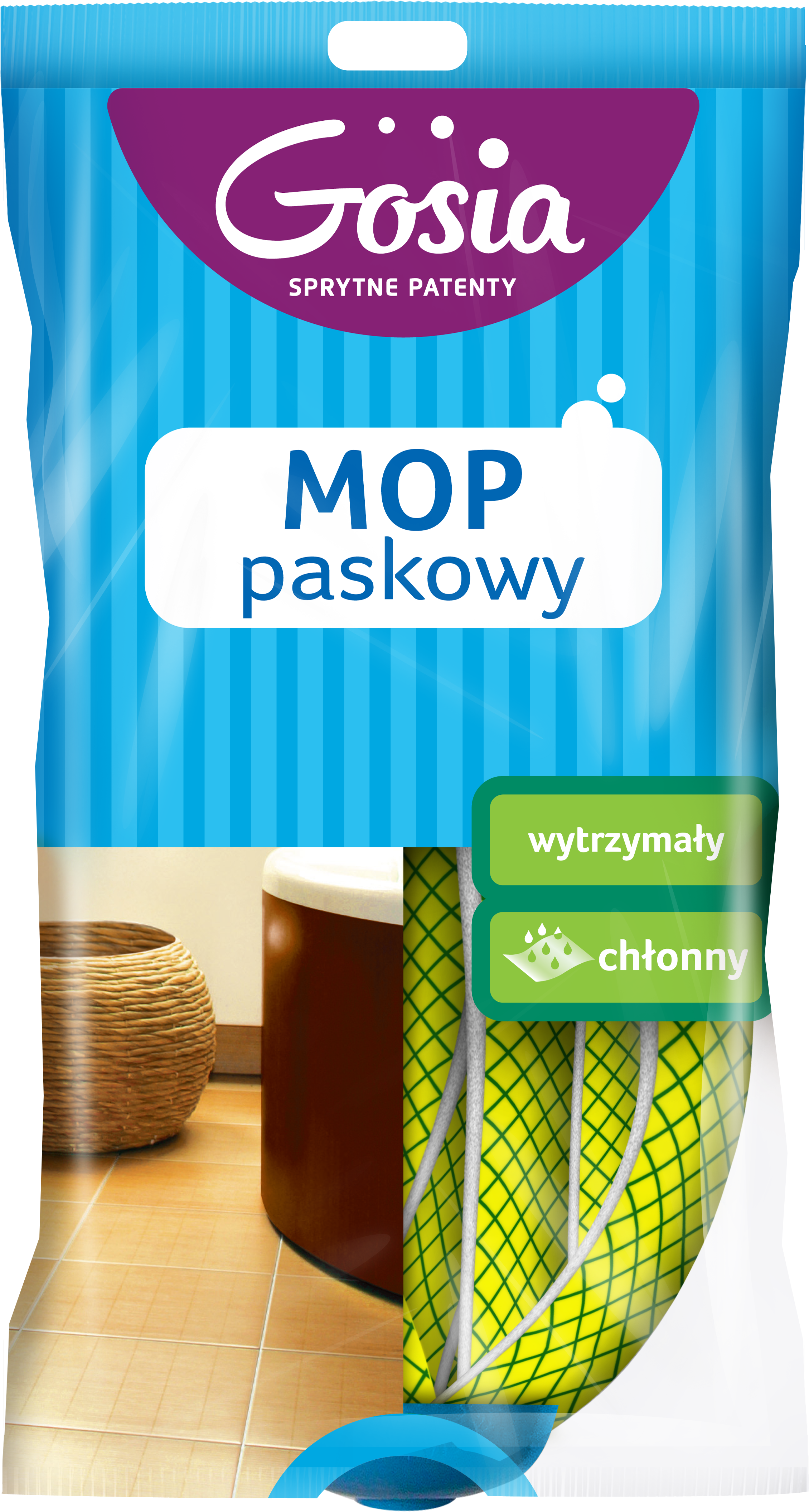 Mop paskowy Gosia sprawdzi się na różnych domowych powierzchniach, również podczas mycia schodów czy wąskich szczelin między i pod meblami. Sięgnij po niego, jeśli nie lubisz, kiedy podłoga schnie zbyt długo.