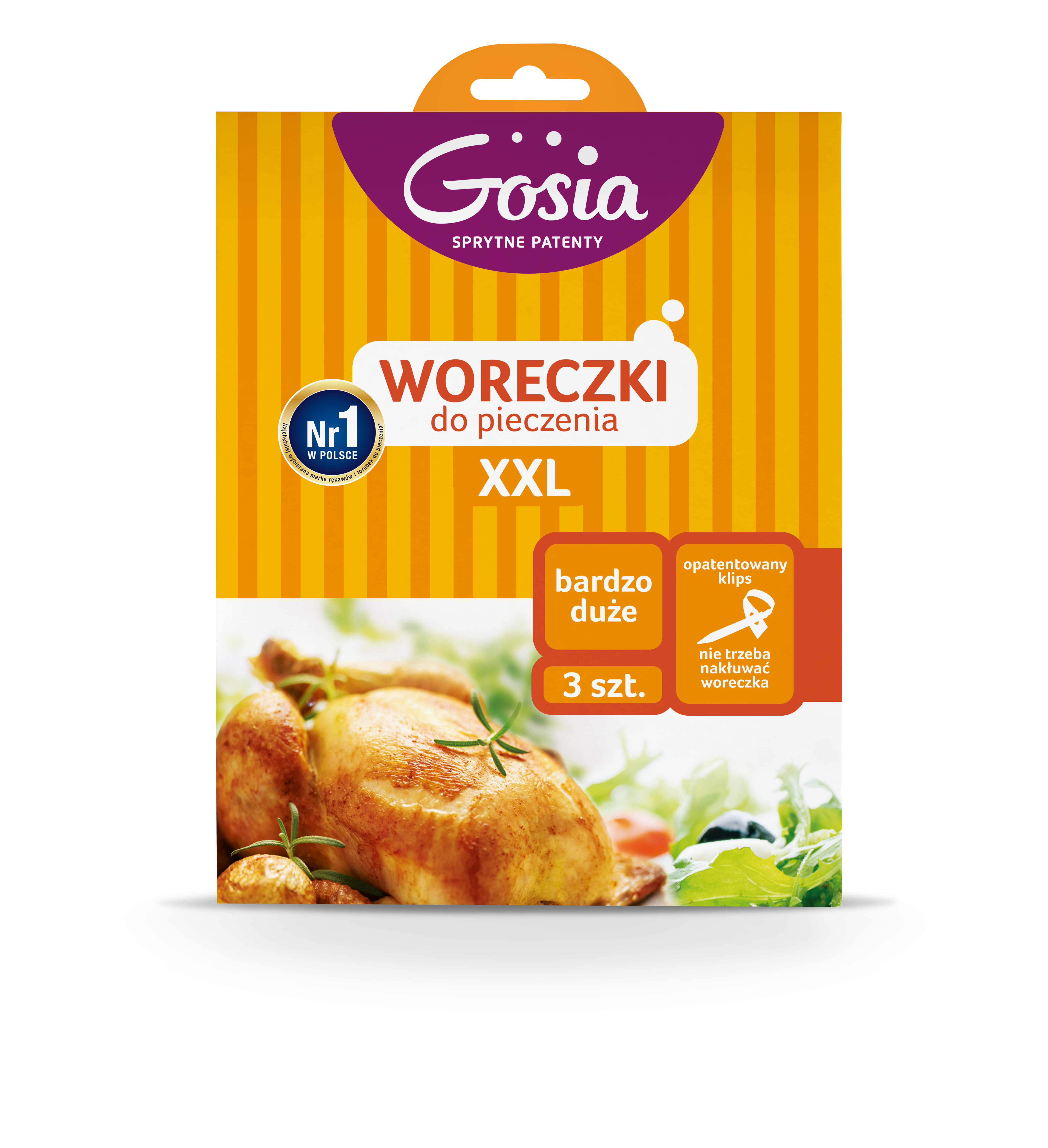 Do woreczków XXL Gosia dołączone są nowe, opatentowane klipsy, dzięki którym nie musisz nakłuwać woreczków w trakcie pieczenia.