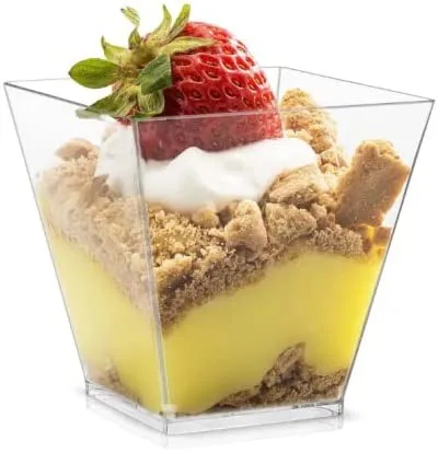 Verine to plastikowe pojemniczki do słonych przekąsek i słodkich deserków. Małe pojemności sprawiają że porcje są idealne "na raz". Prosty design sprawia że nadają się one na wiele okazji np. wesele, urodziny czy impreza firmowa. Pojemniczki deserowe to świetny sposób na podanie w elegancki i oryginalny sposób przystawek i deserków. Pojemniki Verine można umyć i zostawić na następną okazje.