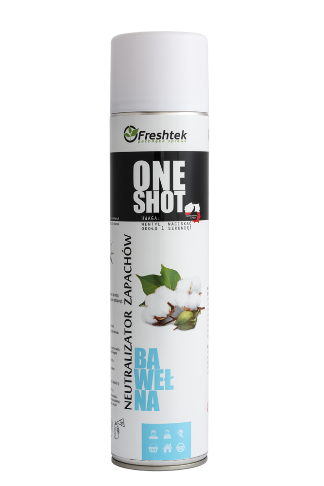 To środek o podwójnym działaniu - odświeżacza powietrza i neutralizatora nieprzyjemnych zapachów. One Shot to środek silnie skoncentrowany, jedno naciśniecie wystarcza nawet do 200 m3.