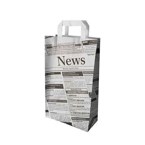 Torba papierowa Newsprint marki Papstar to ekologiczna i praktyczna torba z papieru z nadrukiem gazetowym, która jest idealna do przechowywania i transportowania różnych przedmiotów, takich jak zakupy spożywcze, ubrania, książki i wiele innych.