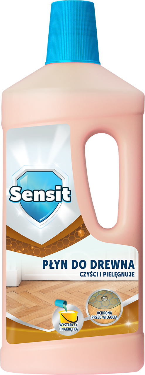Płyn do drewna marki Sensit przywraca drewnianej podłodze naturalny blask. Skutecznie usuwa nawet najtrudniejsze zabrudzenia z parkietów oraz paneli drewnianych. Zawiera naturalny wosk i olejek awokado, dzięki czemu tworząc warstwę hydrofobową, pielęgnuje i chroni czyszczoną powierzchnię przed wilgocią.