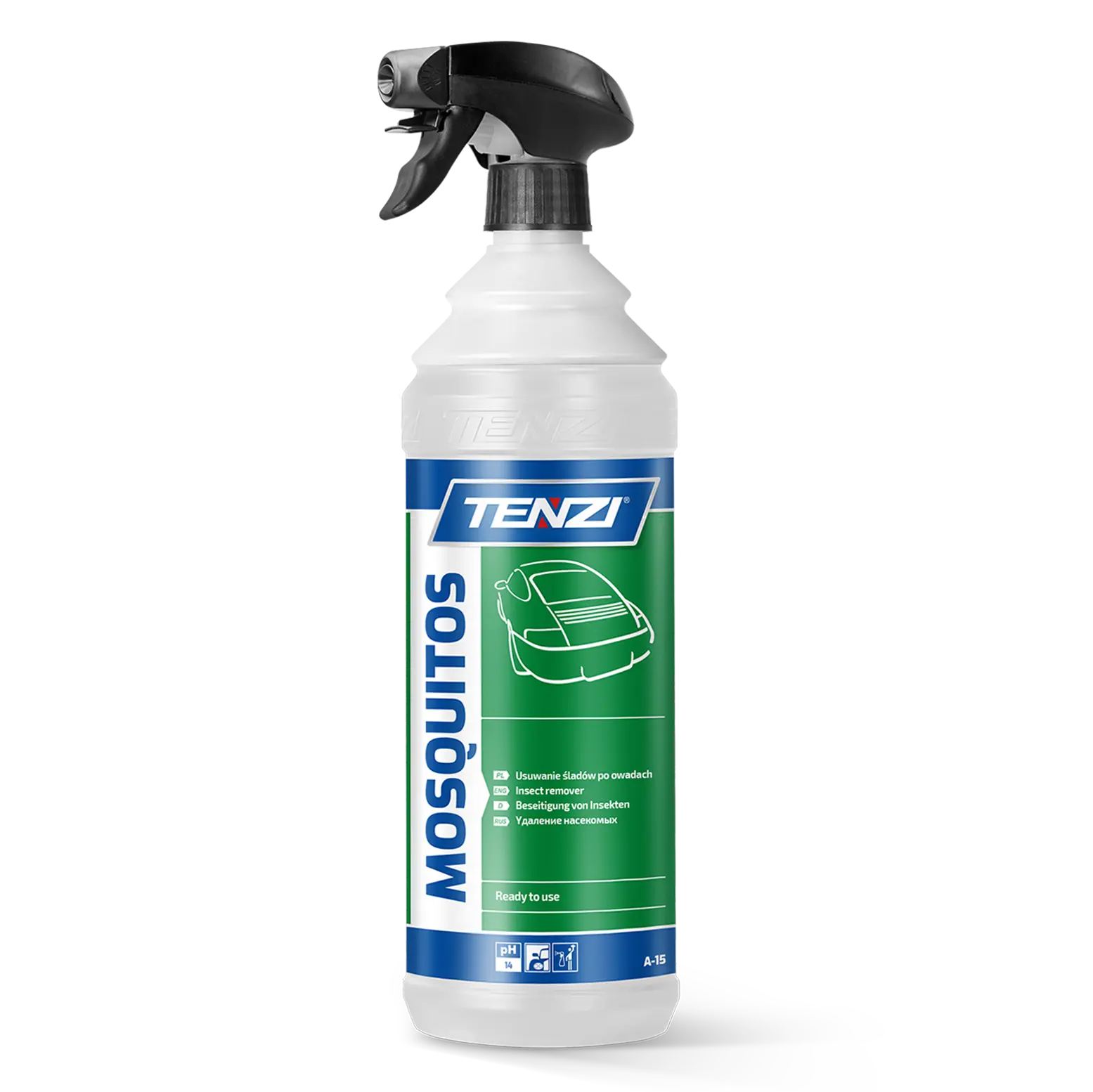 TENZI Mosquitos A-15 to specjalistyczny preparat o wysokiej skuteczności, przeznaczony do usuwania śladów po owadach oraz innych zanieczyszczeń zewnętrznych z karoserii, szyb i lusterek samochodowych. Idealny do zastosowania przed głównym myciem pojazdu w sezonie wiosna – lato – jesień.