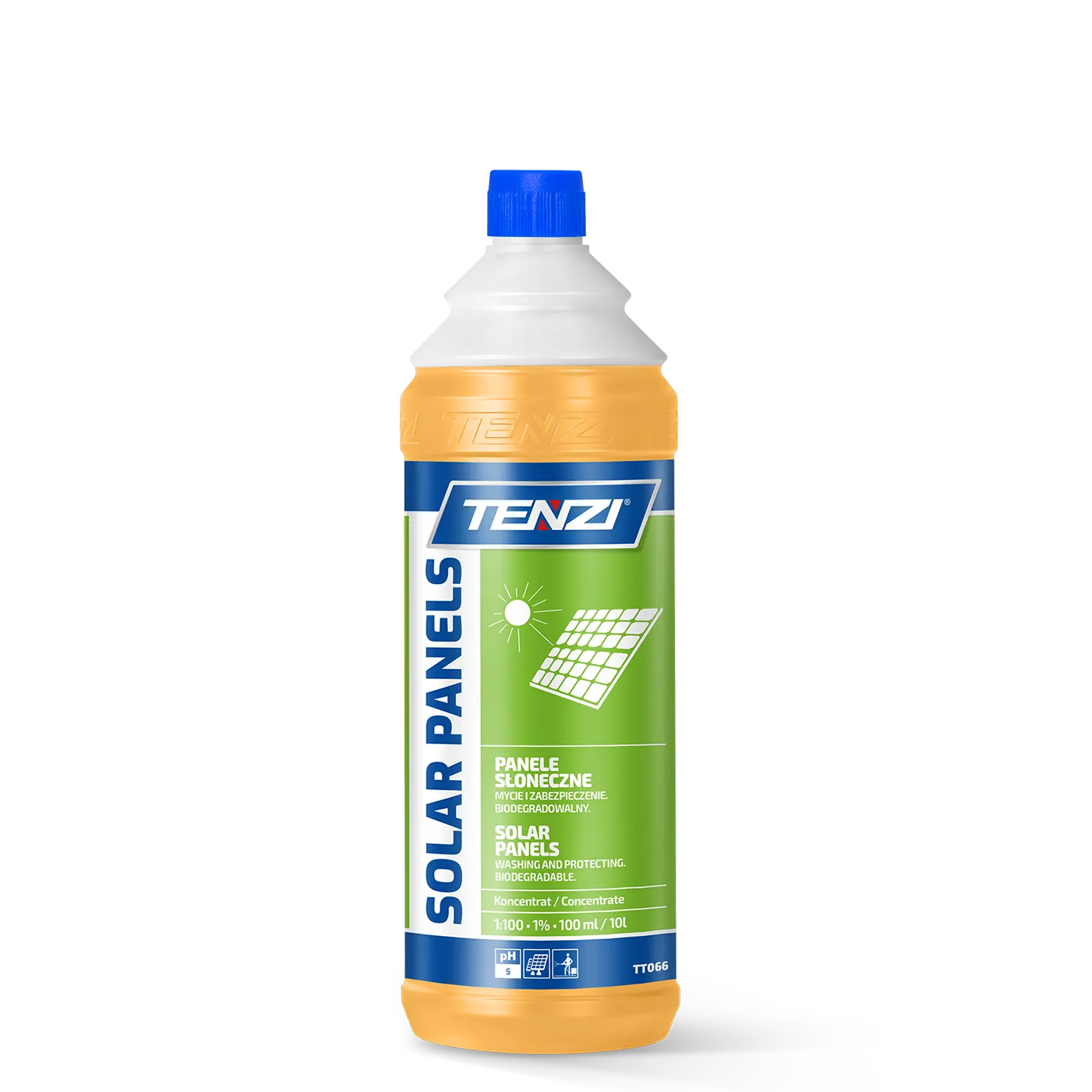TENZI Solar Panels to specjalistyczny preparat o lekko kwaśnym odczynie, stworzone do skutecznego usuwania zabrudzeń eksploatacyjnych — takich jak sadza, kurz, pył — oraz mineralnych osadów wodnych i atmosferycznych. Produkt tworzy hydrofobową powłokę ochronną, która spowalnia proces ponownego brudzenia powierzchni. Biodegradowalny, zapewnia pełną przepuszczalność promieni słonecznych (100 %) dla paneli.