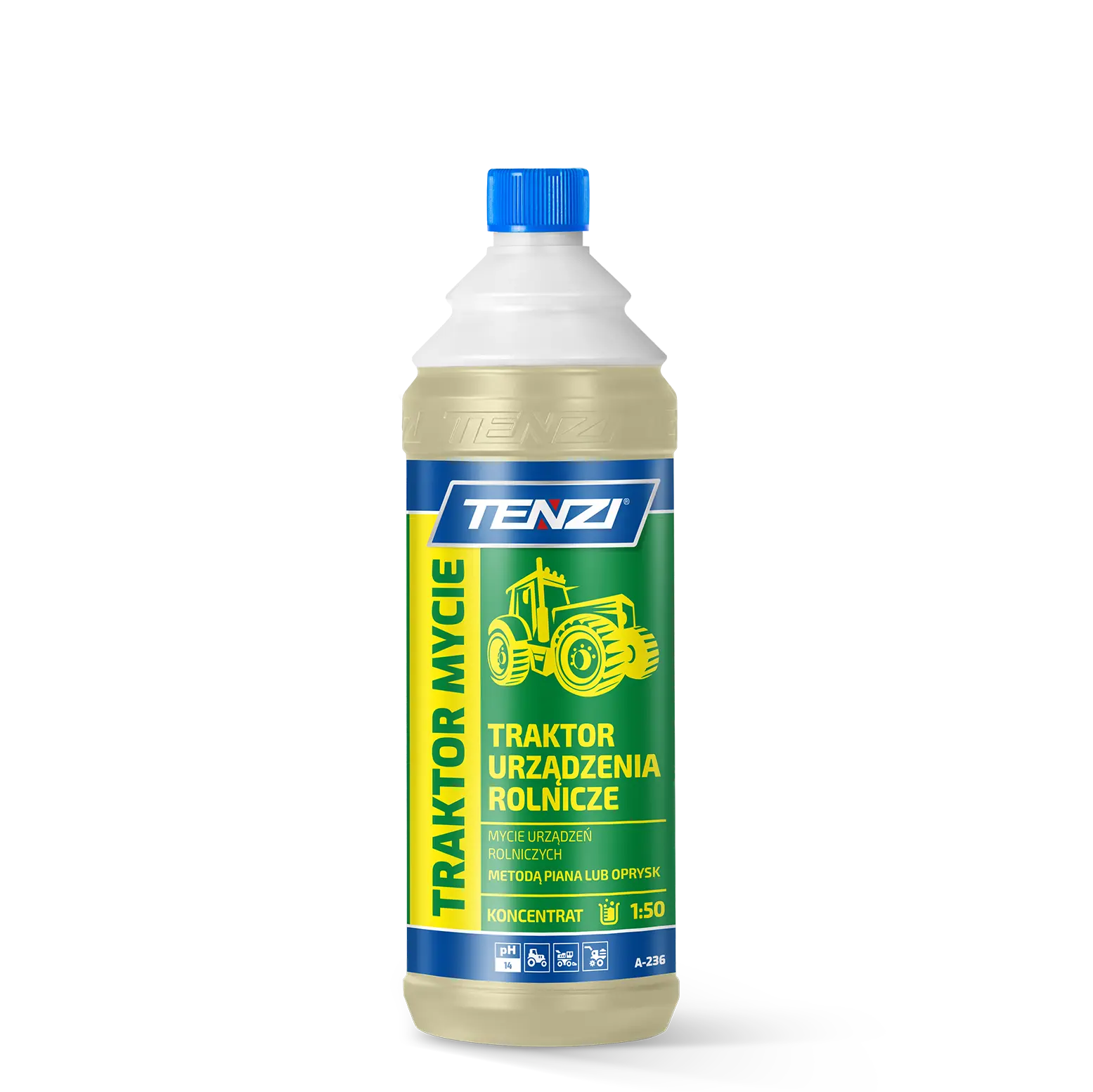 TENZI Traktor Mycie to wysokozasadowy preparat przeznaczony do intensywnego czyszczenia traktorów, kombajnów oraz innych urządzeń i pojazdów rolniczych. Skutecznie usuwa tłuszcze roślinne i zwierzęce, substancje ropopochodne, zaschnięte błoto, glinę, pyłki i pozostałości po nawozach. Świetnie współpracuje z zimną twardą wodą i jest idealny do zastosowań profesjonalnych.