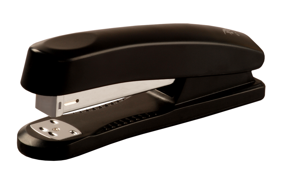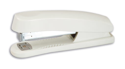 Zszywacz w obudowie z tworzywa sztucznego, części mechaniczne metalowe. Zszywanie zamknięte i otwarte.